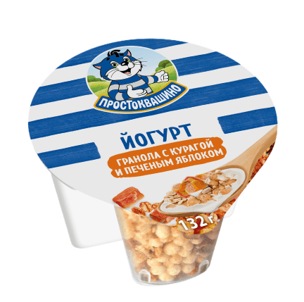 Самое удивительное лакомство то, что сочетает разнообразие текстур. В этом творожке хрустящая гранола, тающая сливочная масса, густой творог и вкус печёных яблок с курагой